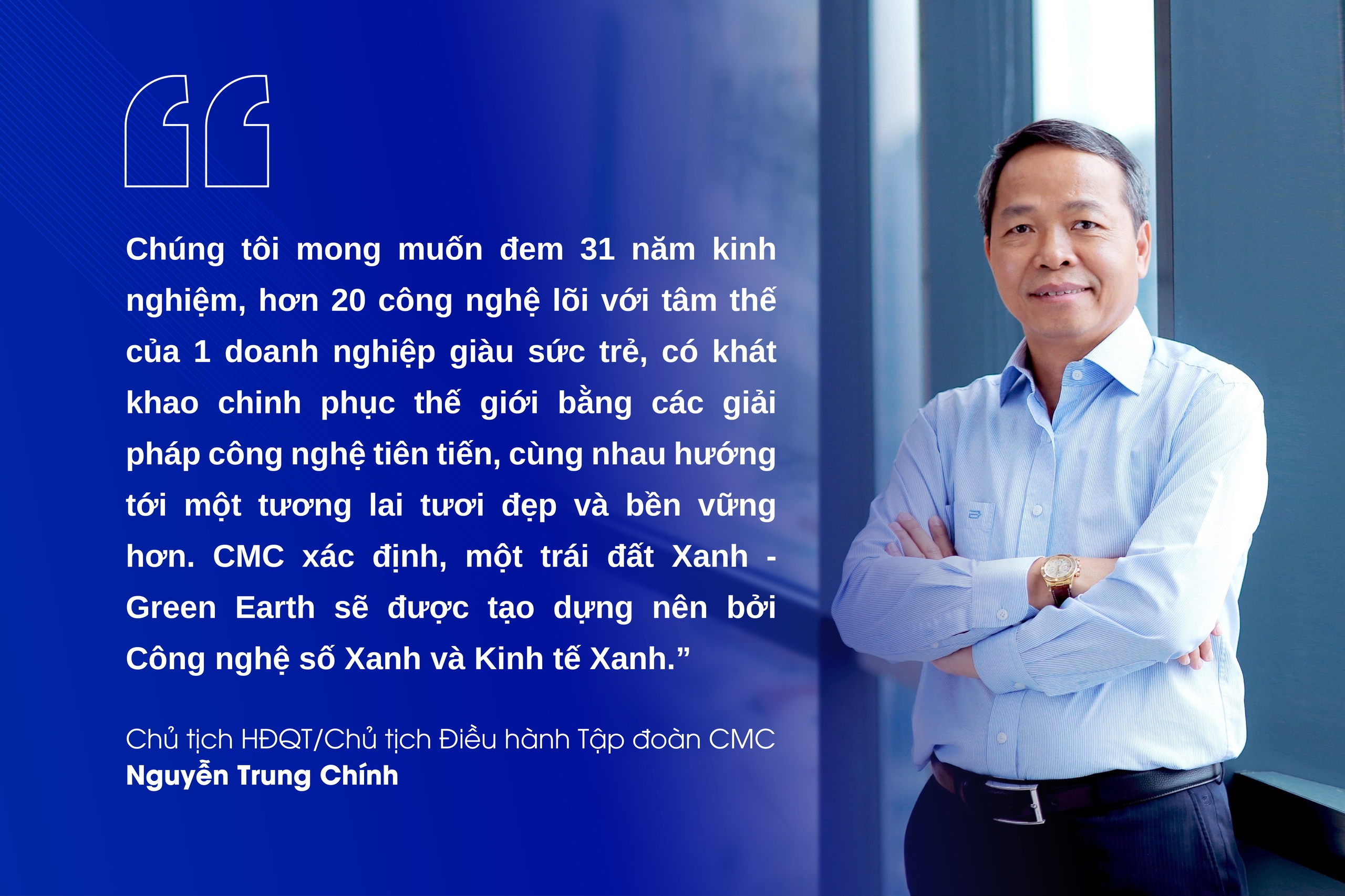Sau 31 năm hình thành và phát triển với hơn 20 năm vươn ra thế giới, Tập đoàn công nghệ CMC (CMC) đã trở thành một trong những doanh nghiệp CNTT tiên phong với tâm thế không ngừng lớn mạnh và vươn xa. Ông Nguyễn Trung Chính khẳng định: “Go Global – Chiến lược đưa con người Việt Nam, trí tuệ Việt Nam đi ra thế giới, có chỗ đứng vững chắc trên toàn cầu luôn là kim chỉ nam cho mọi hoạt động kinh doanh của Tập đoàn”.