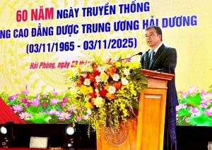 Thứ trưởng khẳng định, trong chiến lược phát triển nhân lực y tế Việt Nam, Trường Cao đẳng Dược Trung ương Hải Dương có vai trò quan trọng trong việc đào tạo đội ngũ cán bộ y – dược có trình độ, kỹ năng và tư duy đổi mới sáng tạo, góp phần nâng cao chất lượng chăm sóc sức khỏe nhân dân.