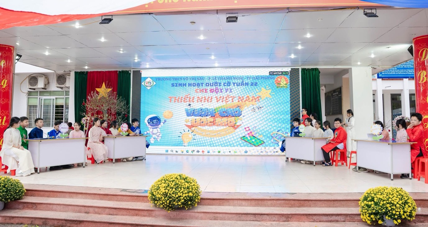 Hoạt động sinh hoạt dưới cờ tại THCS Võ Thị Sáu là minh chứng cụ thể cho việc ứng dụng công nghệ số không chỉ phục vụ quản lý, dạy và học, mà còn góp phần hình thành tư duy số, nuôi dưỡng ước mơ và khát vọng phát triển cho học sinh, qua đó lan tỏa thông điệp “Vươn cao ước mơ – Making dreams come true”, phù hợp với định hướng xây dựng xã hội số, công dân số của thành phố Hải Phòng trong giai đoạn hiện nay.