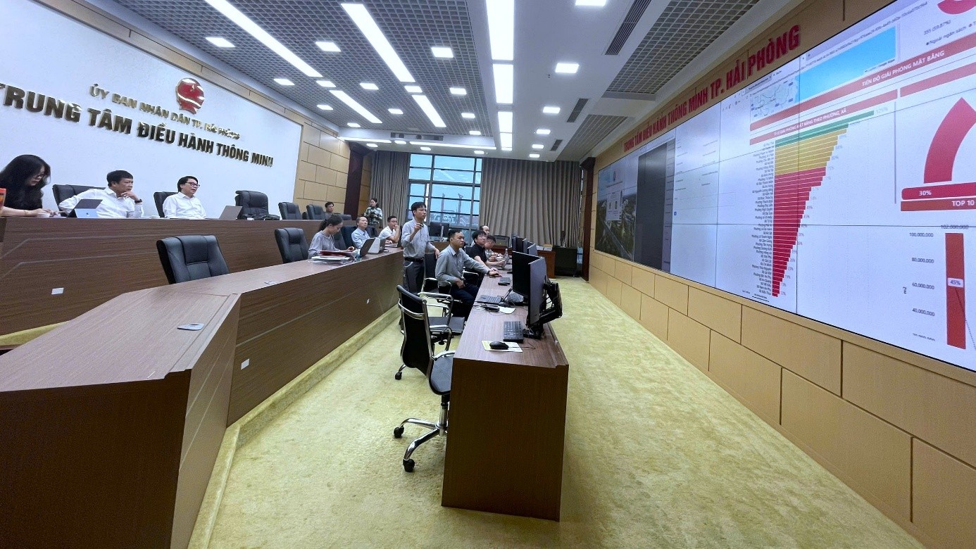 Tại buổi làm việc, bộ phận kỹ thuật Trung tâm Giám sát, điều hành thông minh (IOC) thuộc Trung tâm Công nghệ thông tin và Truyền thông Hải Phòng đã báo cáo toàn diện hiện trạng triển khai hạ tầng kỹ thuật, hệ thống phần mềm, kết nối – liên thông dữ liệu và phương án tổ chức vận hành IOC của thành phố. Báo cáo tập trung làm rõ các nhóm bài toán điều hành trọng tâm, bao gồm: theo dõi thu – chi ngân sách; giám sát giải ngân vốn đầu tư công; theo dõi tiến độ giải phóng mặt bằng các dự án sử dụng vốn đầu tư công; giám sát việc tiếp nhận, xử lý hồ sơ thủ tục hành chính của các sở, ngành, địa phương…